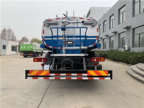 整車具有路面灑水、路面沖洗、噴霧降塵、澆花等多種功能。躍迪灑水車罐體后帶工作平臺,平臺上安裝綠化灑水炮,灑水炮可全方位旋轉,可連續調成直沖狀、大雨、小雨、毛毛雨,帶安全護欄。